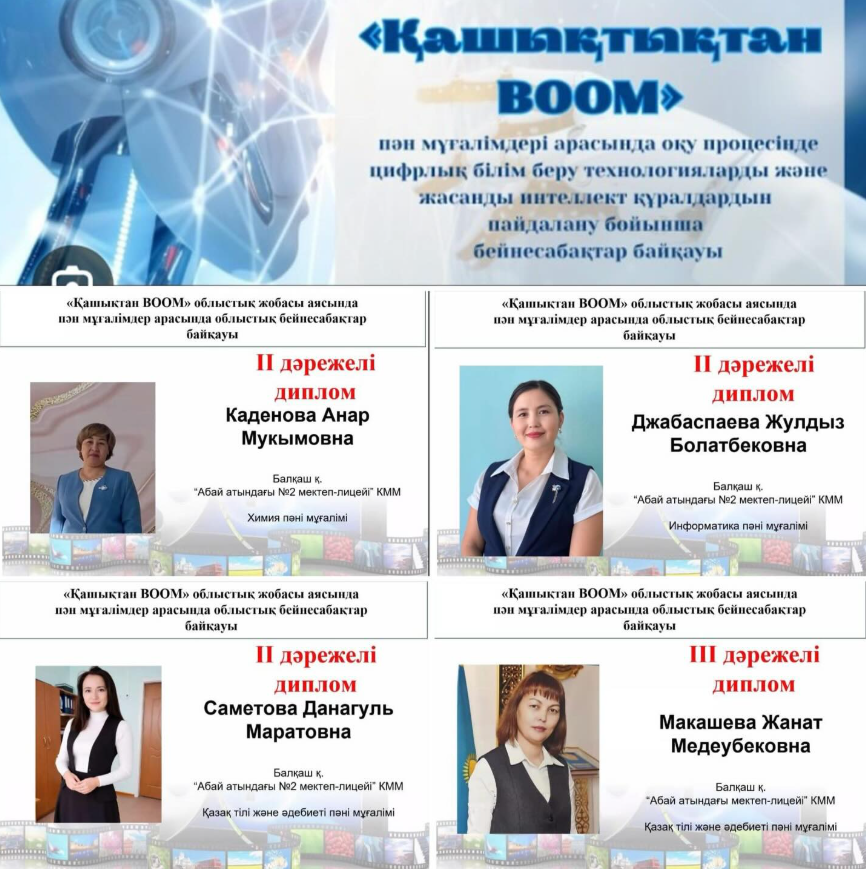 “Қашықтықтан BOOM “облыстық жобасы аясында пән мұғалімдері арасында өткен облыстық бейнесабақтар байқауына қатысқан мектеп лицейіміздің мұғалімдері жүлделі орындармен марапатталды.